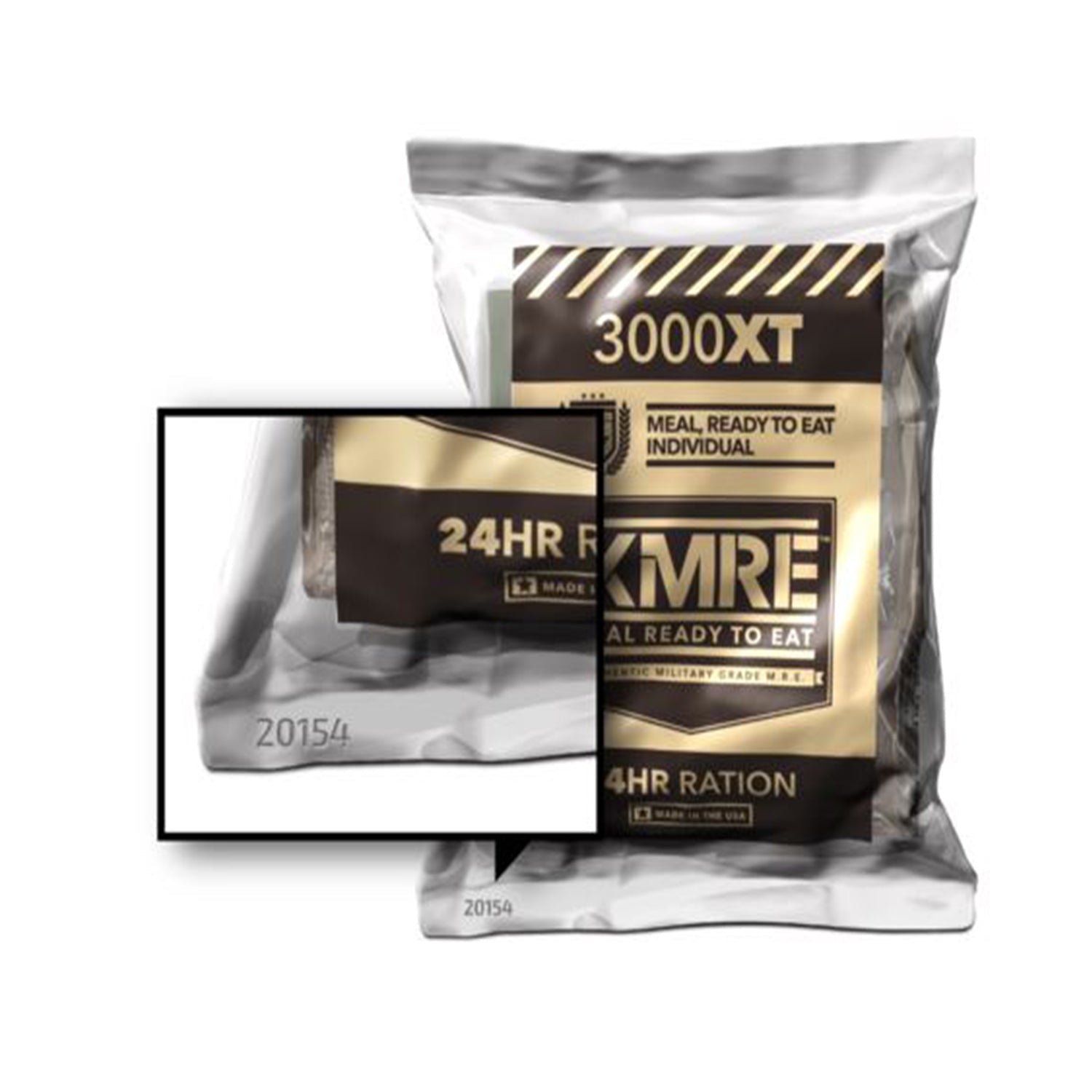 The XMRE® 24HR Ration offers a comprehensive daily supply of U.S. military-grade, ready-to-eat meal components. Each ration delivers between 2,500 to 3,000 calories, ensuring the necessary nutrients and energy for 24 hours of intense activity. These meals are fully cooked and can be eaten directly from the pouch, with no need for additional water. Each ration is freshly packed and meets both military and civilian needs.