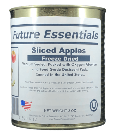 We have the perfect size for you if you like freeze-dried apples but need help to handle a #10 can. Future Essentials Freeze Dried Sliced Apples are dehydrated using a vacuum and a very low temperature to eliminate moisture from the frozen product. After packaging, only about 3% moisture remains in the product.