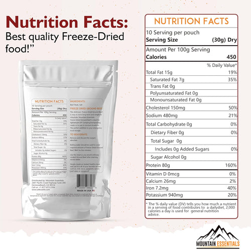 Mountain Essentials Freeze Dried Ground Beef Resealable Pouch 300 grams