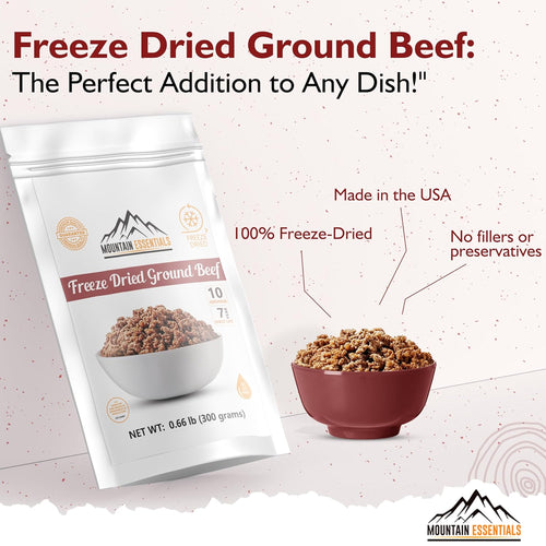 Mountain Essentials canned ground beef is a versatile and convenient food option used for everyday cooking or stored as an emergency food supply. With its premium freeze-dried quality, you can be sure that you're getting high-quality natural meat that is free from artificial fillers or preservatives.