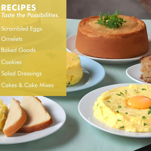 • Quality Ingredients: Crafted from dried whole eggs, yolks, and egg whites for a genuine egg experience.