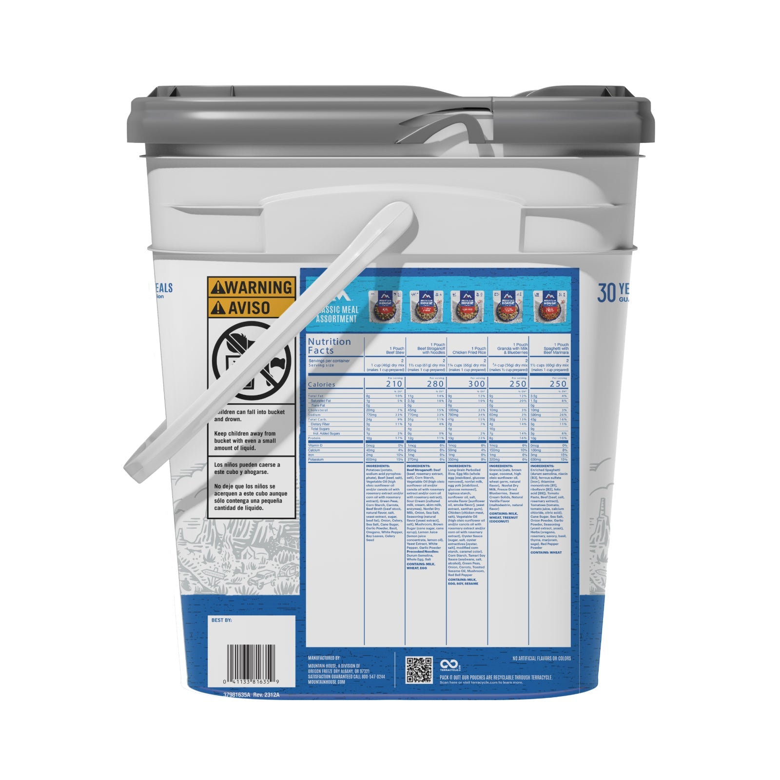 Mountain House Classic Meal Assortment Bucket - Freeze Dried Backpacking & Camping Food | 24 Servings