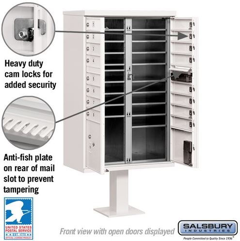 Salsbury Cluster Box Unit with 16 Doors and 2 Parcel Lockers in White with USPS Access – Type III (3316WHT-U)